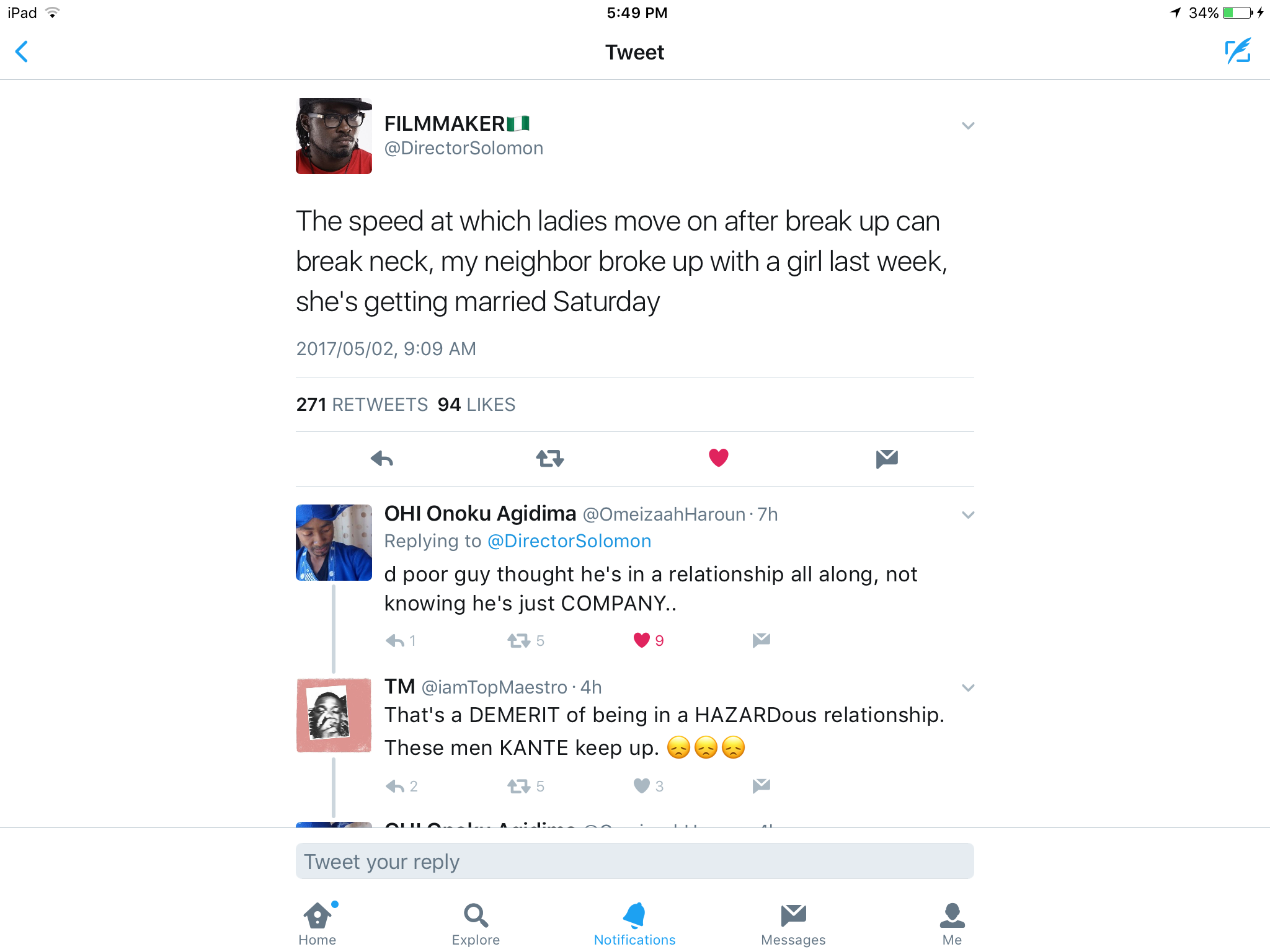 @BlueBlood_elia tweeted that line this week. We weighed in with our opinions,  some of them were profound while others were flippant.  I have many single women friends and I ask myself the same question sometimes. A single friend of mine recently posted on Facebook, how she just wanted a man “who would show up and stay”. I thought this was just a women’s issue until  @DirectorSolomon tweeted the following: